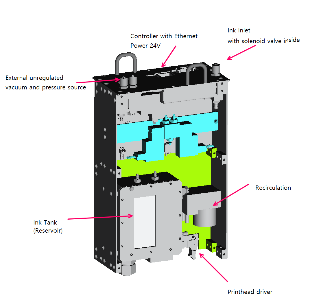 P5 is an integrated ink tank with driver electronics for each printhead, providing an all-in-one solution for industrial inkjet printing applications.